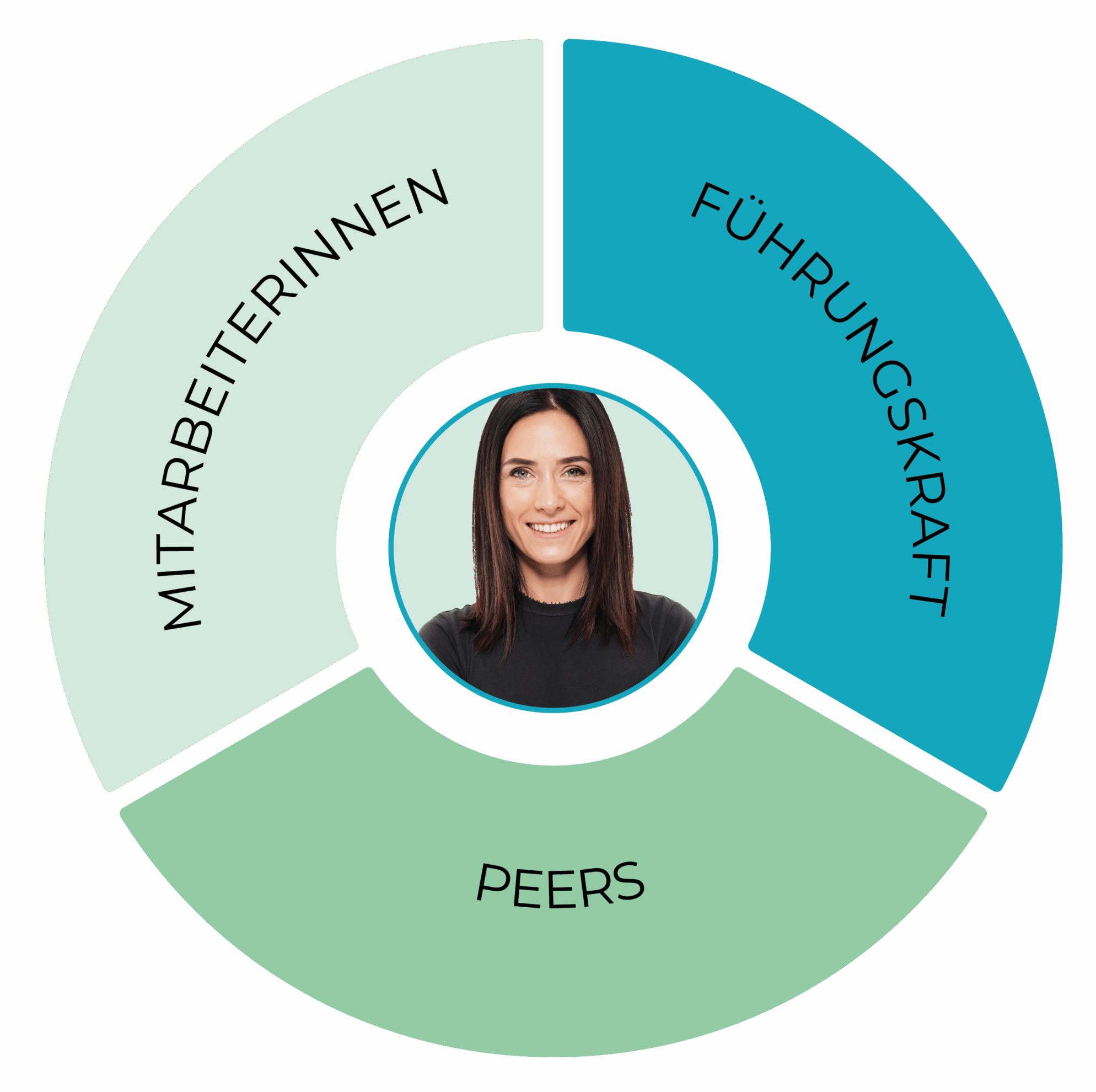 360-Grad-Feedback: Selbstsicht, Führungskraft des Feedbacknehmenden, Peers oder Kolleg:innen, Mitarbeiter:innen in der eigenen Abteilung, externe Personen z.B. Coaches