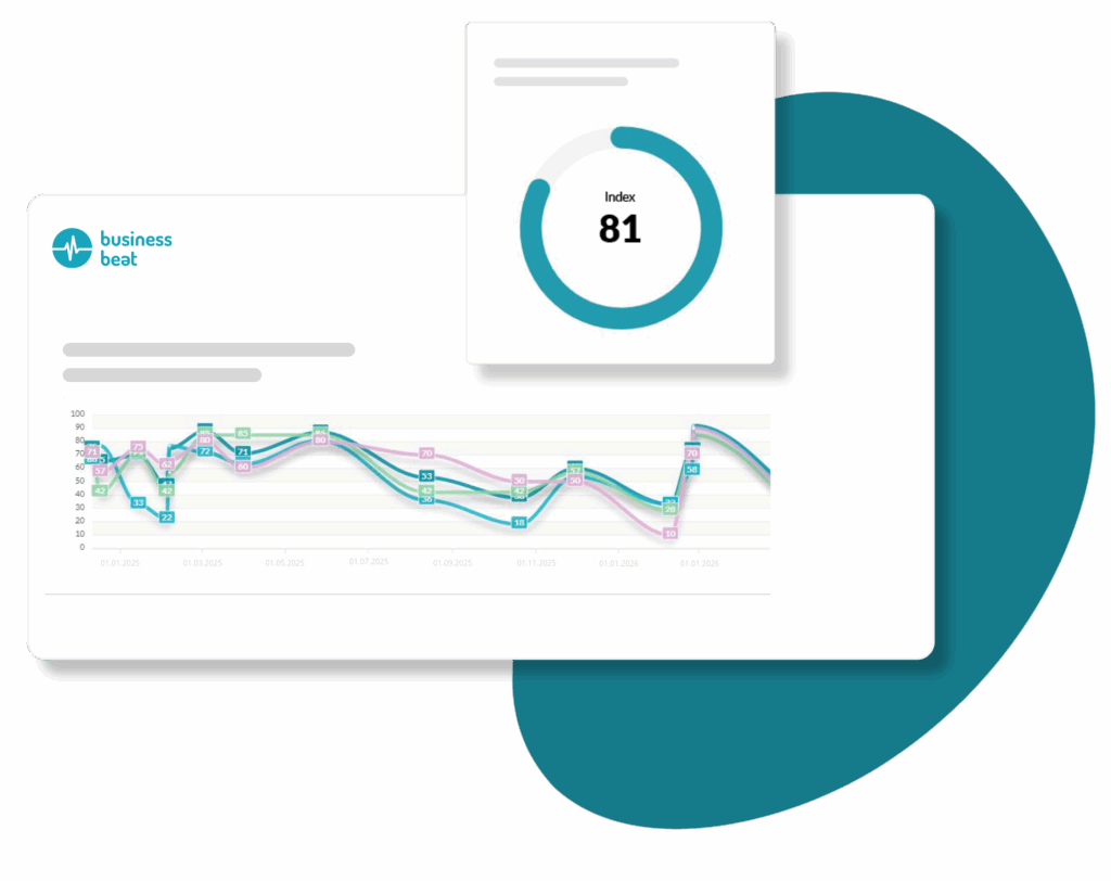 Durch strukturierten Onboarding-Befragungen mit Business Beat schaffst du ab dem ersten Tag eine starke Basis für Mitarbeiterbindung. Denn gerade in den ersten 45 Tagen ist das Risiko für Fluktuation besonders hoch. Regelmäßige Puls-Befragungen fördern Partizipation, decken frühzeitig Herausforderungen auf und sorgen dafür, dass neue Mitarbeitende sich schnell integriert und wertgeschätzt fühlen.